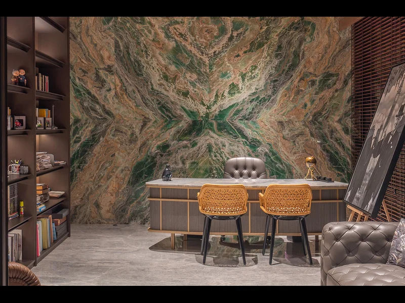 Tips Pemakaian: Manfaatkan pencahayaan untuk memunculkan efek transparansi dari batu onyx, terutama di malam hari; sangat cocok untuk area yang hangat, intim, dan elegan.